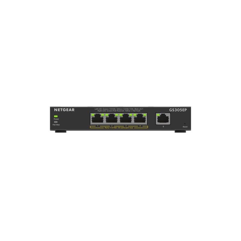 NETGEAR GS305EP PoE Switch 4 Port Gigabit Ethernet LAN Switch PoE+ 63W Plus (5 Ports Plug-and-Play, Managed Netzwerk Switch PoE, IGMP Snooping, QoS,