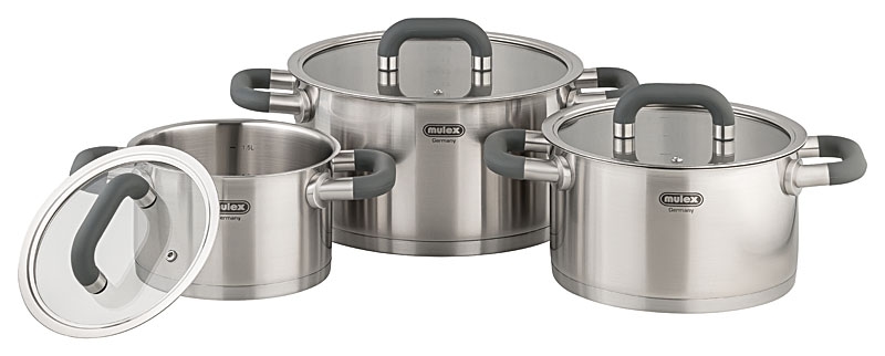 Mulex, Topfset LUGANO aus Edelstahl 6-teilig, für alle Herdarten, mit Deckel, Induktions Töpfe Set