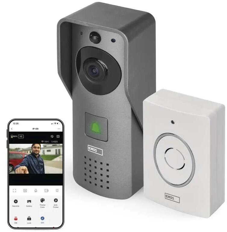 EMOS H4031 GoSmart drahtlose Video-Türklingel, IP-09C, WiFi, grau (3010040310)