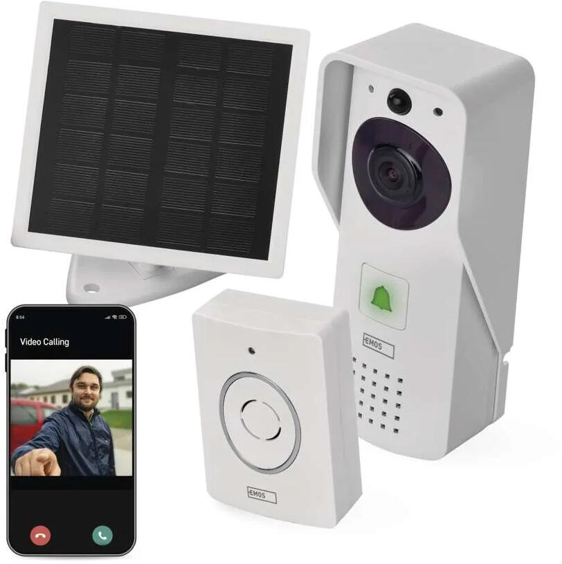 EMOS H4030 GoSmart Drahtlose Video-Türklingel, IP-09D, WiFi, Solarpanel, batteriebetrieben, weiß (3010040300)