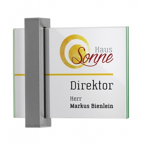 MONACO Türschild 148 | 148x148 mm | 2 Scheiben ESG Glas | Alu silber satiniert | Türschild Büro | Büroschild