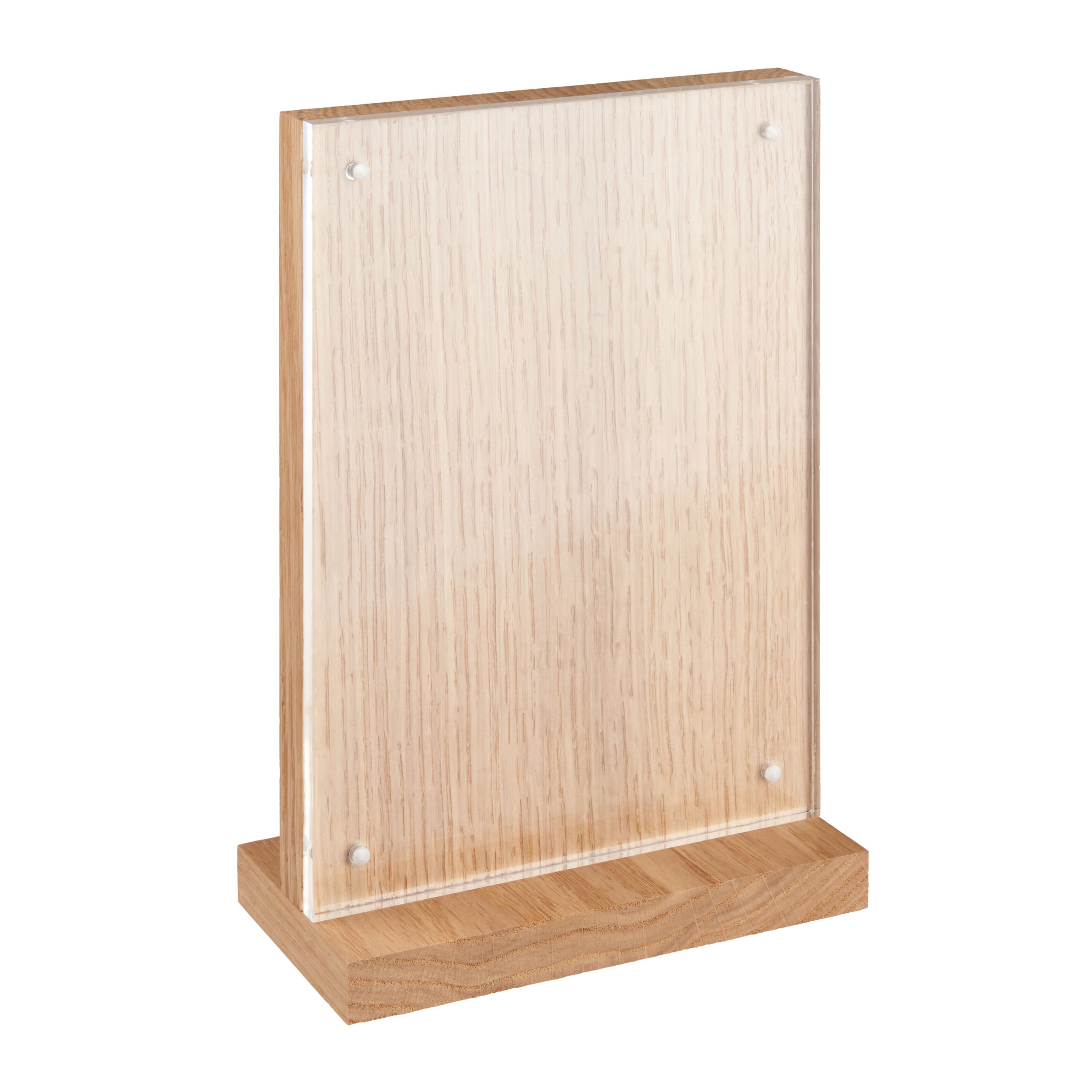 magnetischer T-Aufsteller Acryl/Eiche 130 x 180 mm, Acryl (PMMA), Eiche|transparent