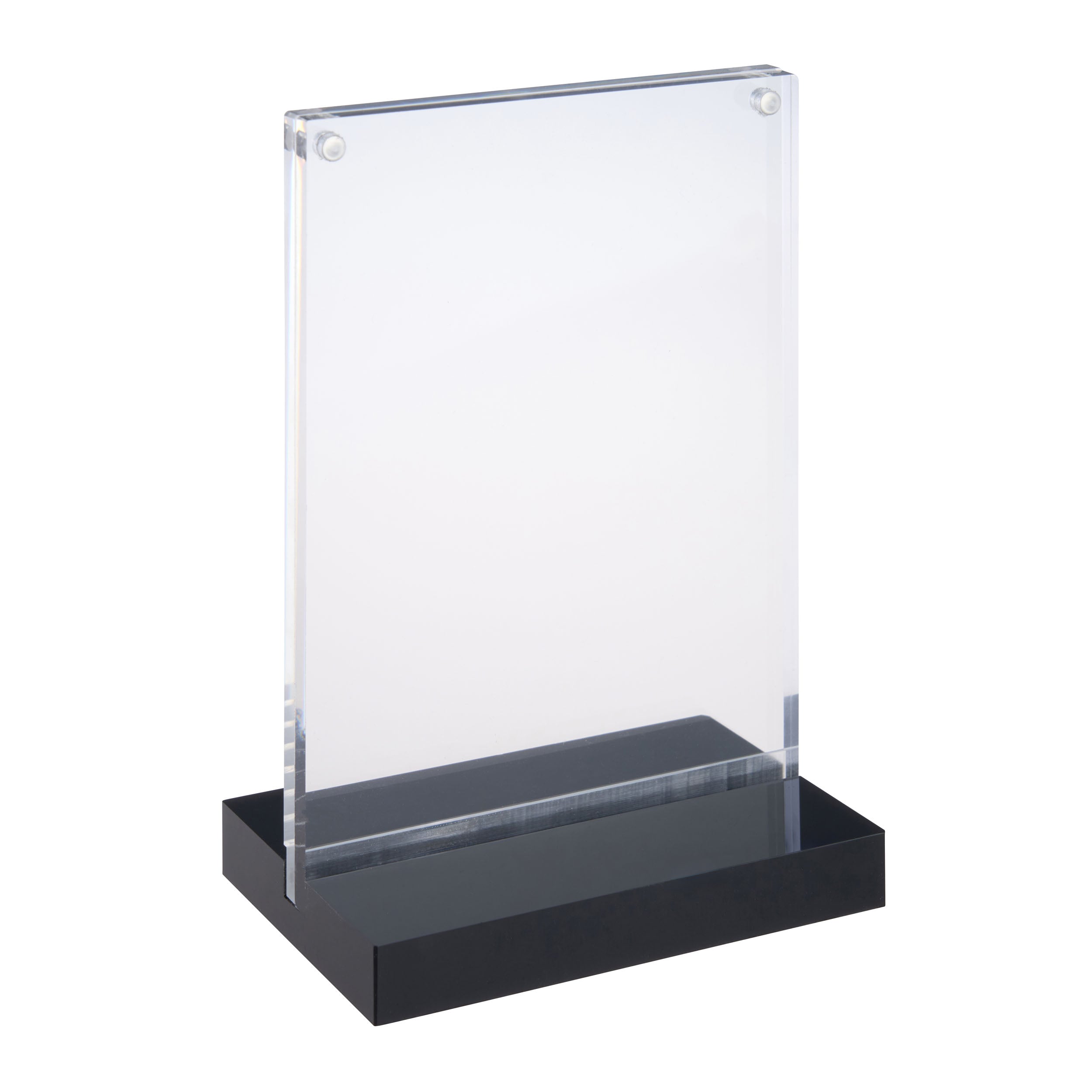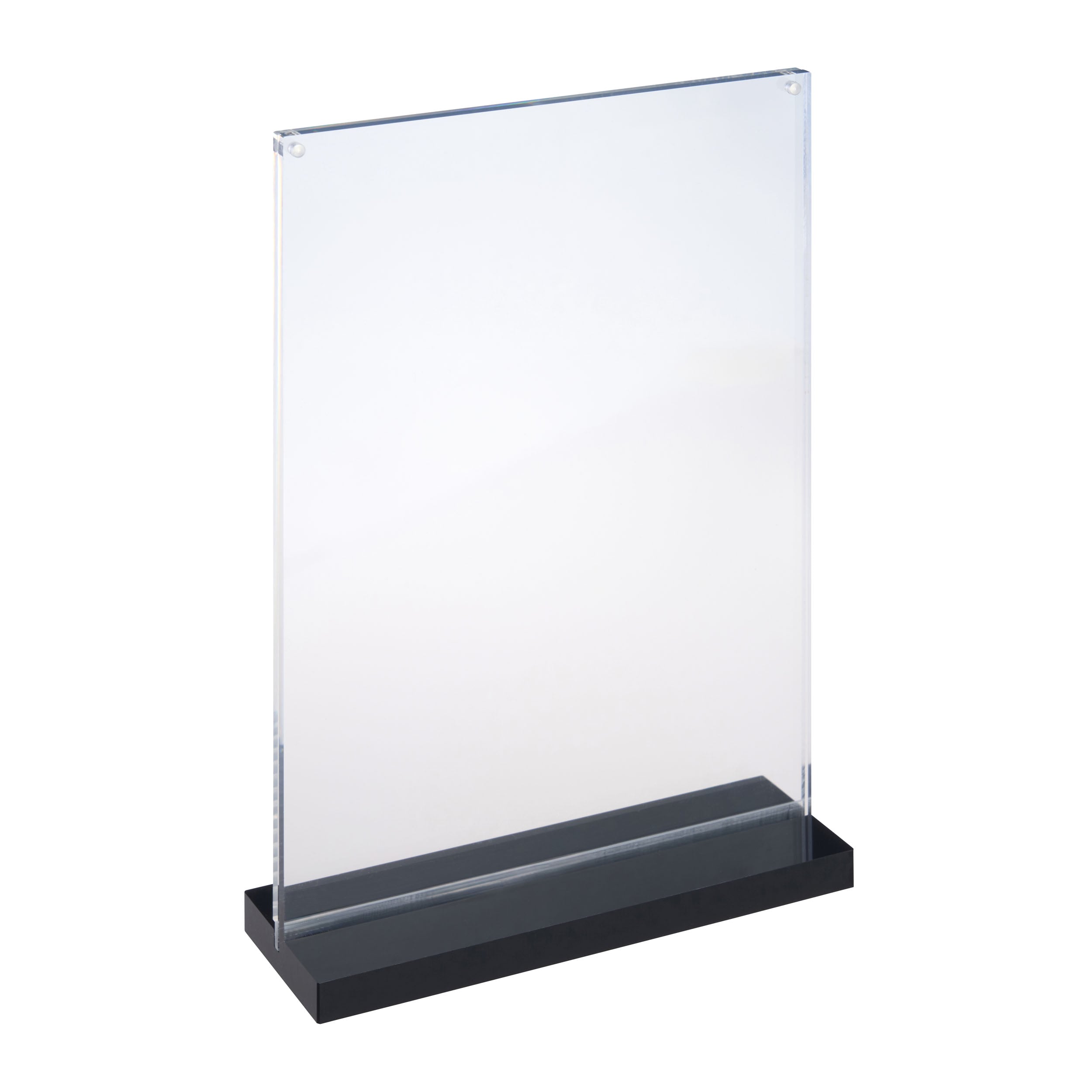 magnetischer T-Aufsteller mit schwarzem Sockel A5 - 148 x 210 mm | Hochformat, Acryl (PMMA), transparent|schwarz