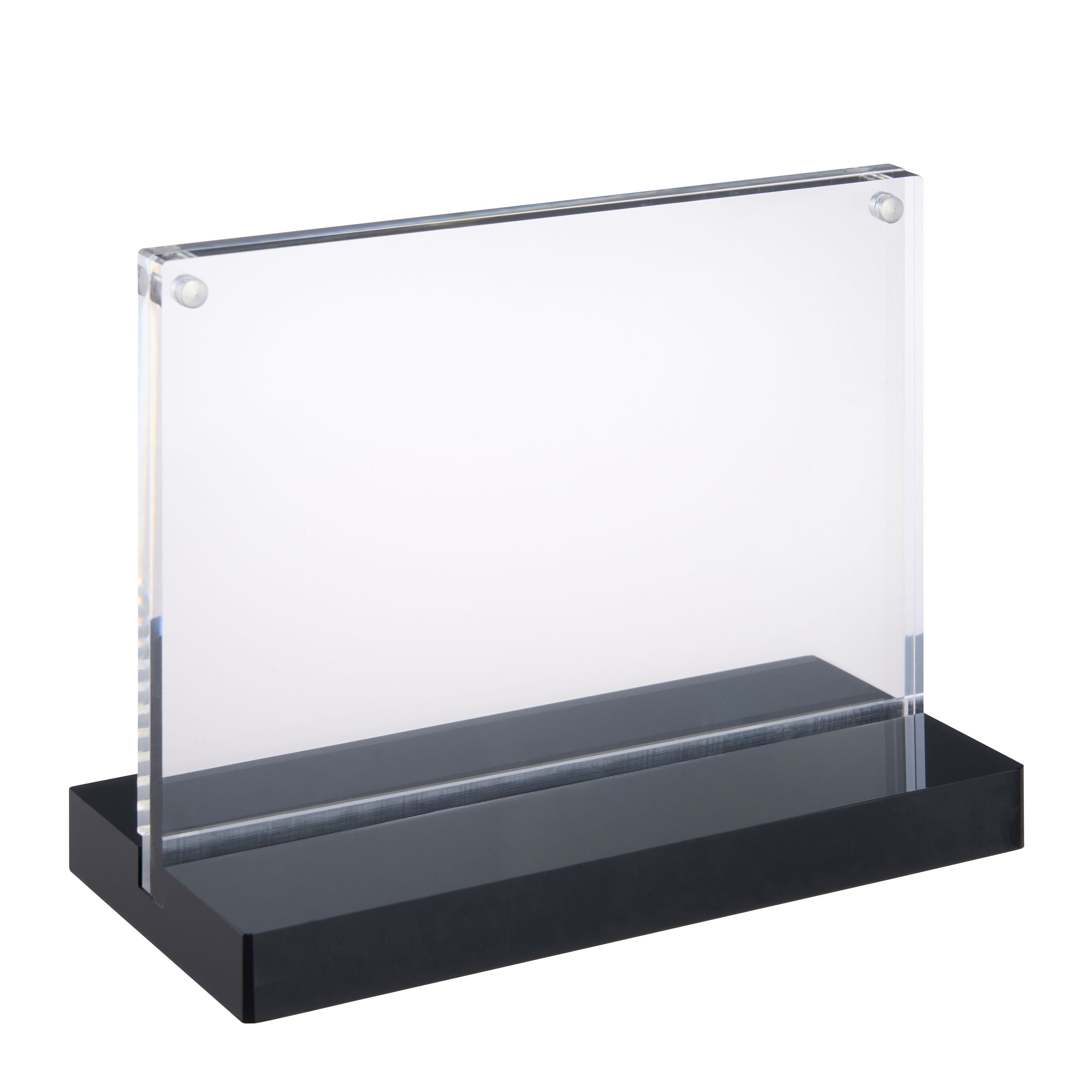 magnetischer T-Aufsteller mit schwarzem Sockel A6 - 148 x 105 mm | Querformat, Acryl (PMMA), transparent|schwarz