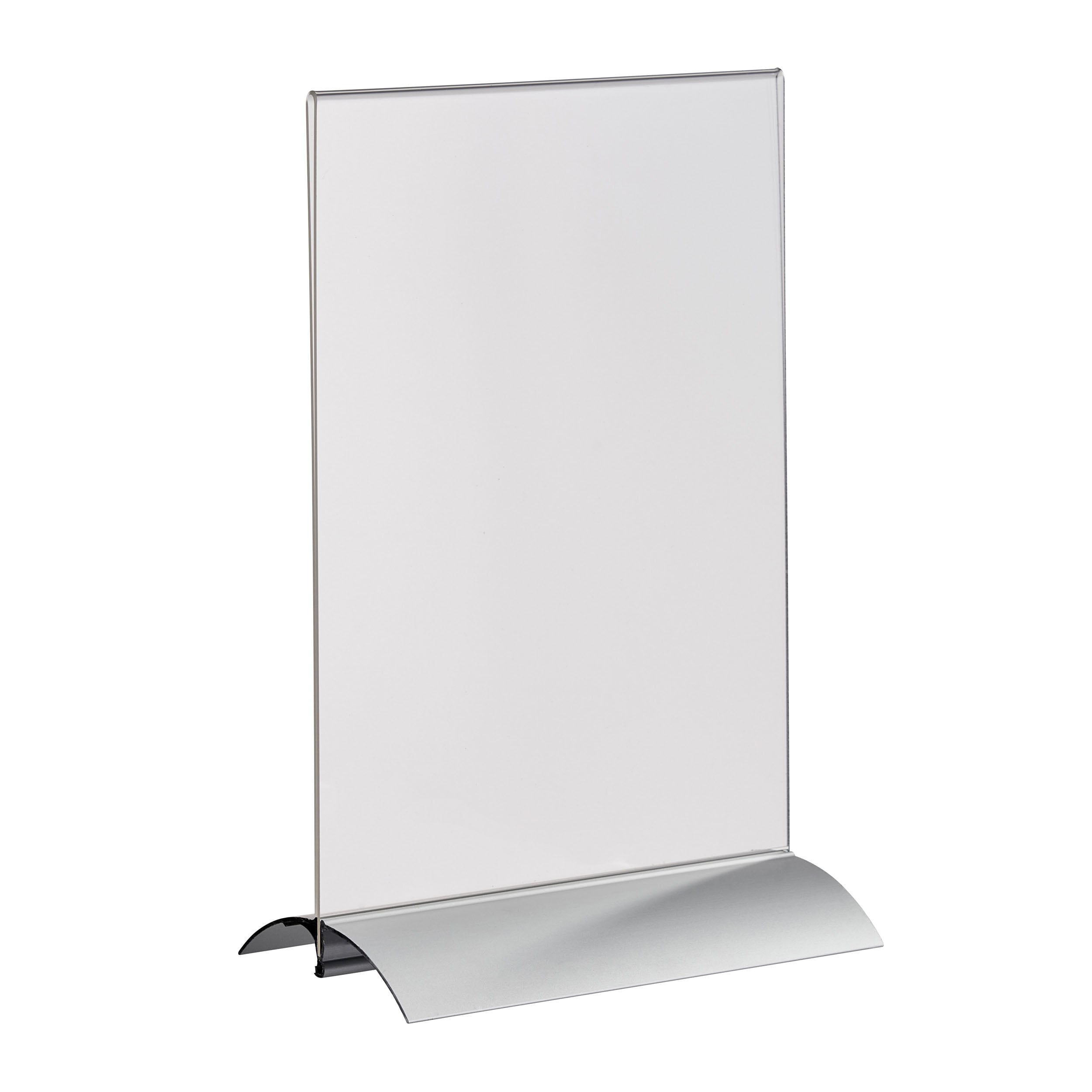 T-Aufsteller mit Aluminumklemmfuß A4 | Hochformat, Acryl (PMMA)|Aluminium, silber|transparent