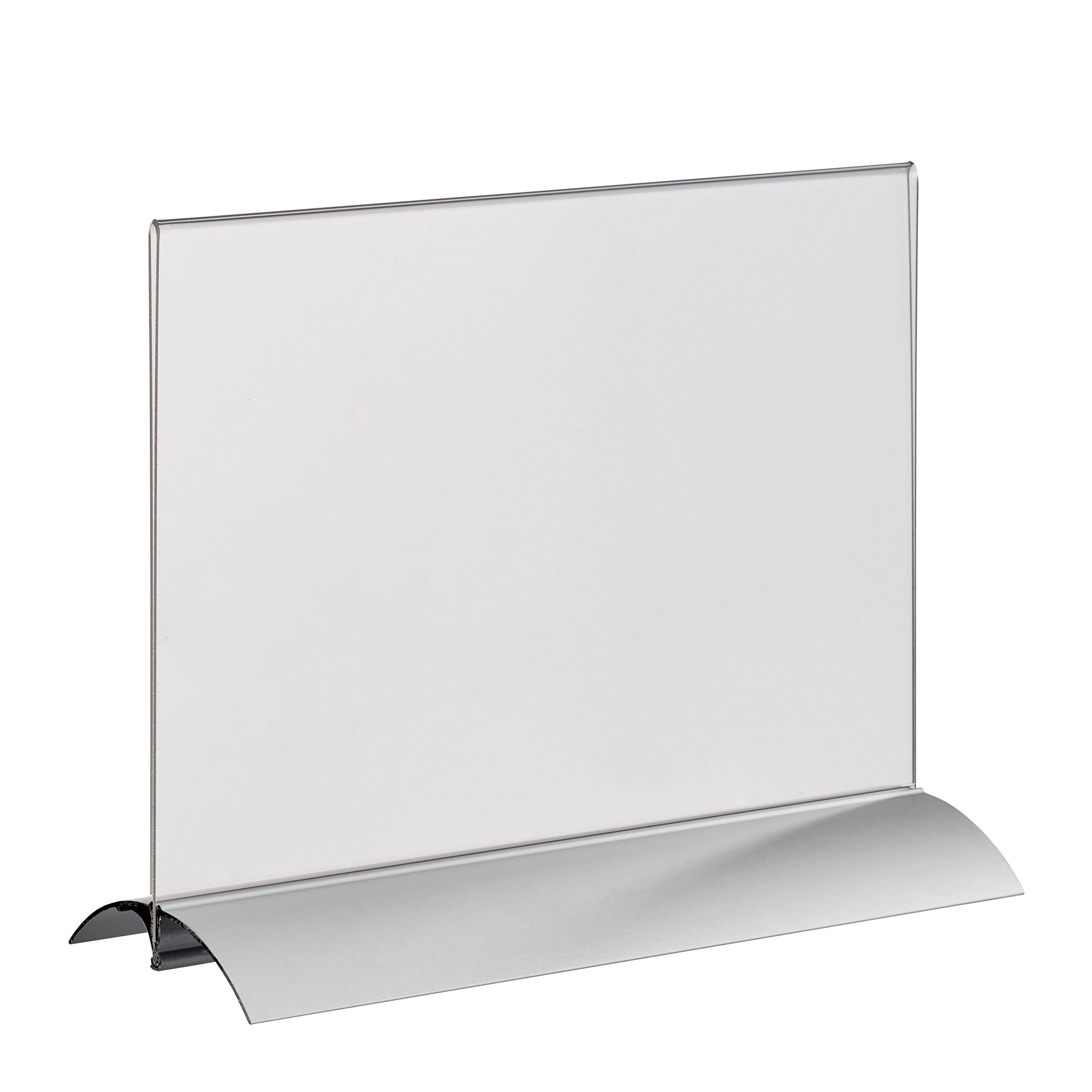 T-Aufsteller mit Aluminumklemmfuß A4 | Querformat, Acryl (PMMA)|Aluminium, silber|transparent