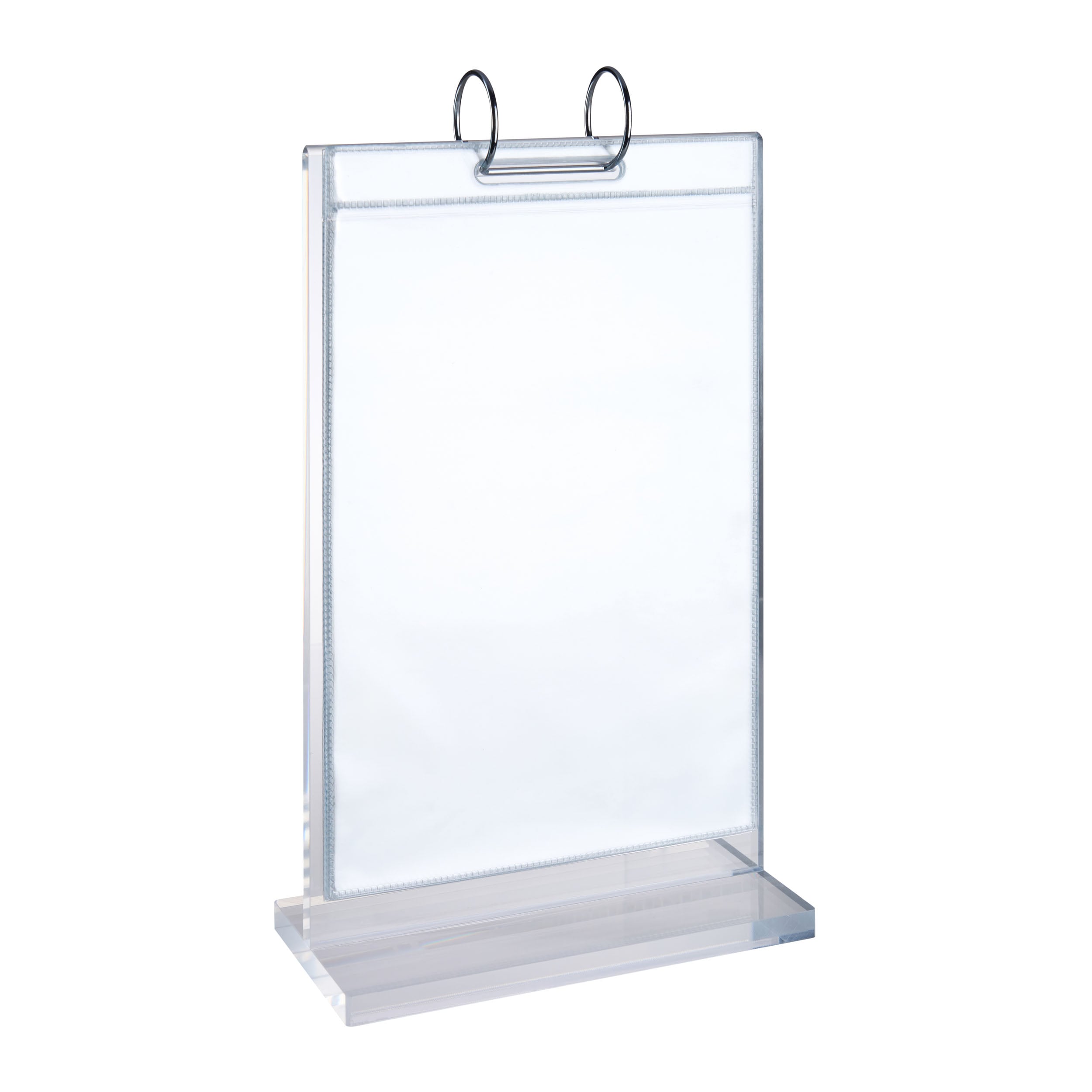 T-Aufsteller FLIP mit Ringmechanik und PVC-Taschen A5, Acryl (PMMA)|PVC|Metall, transparent