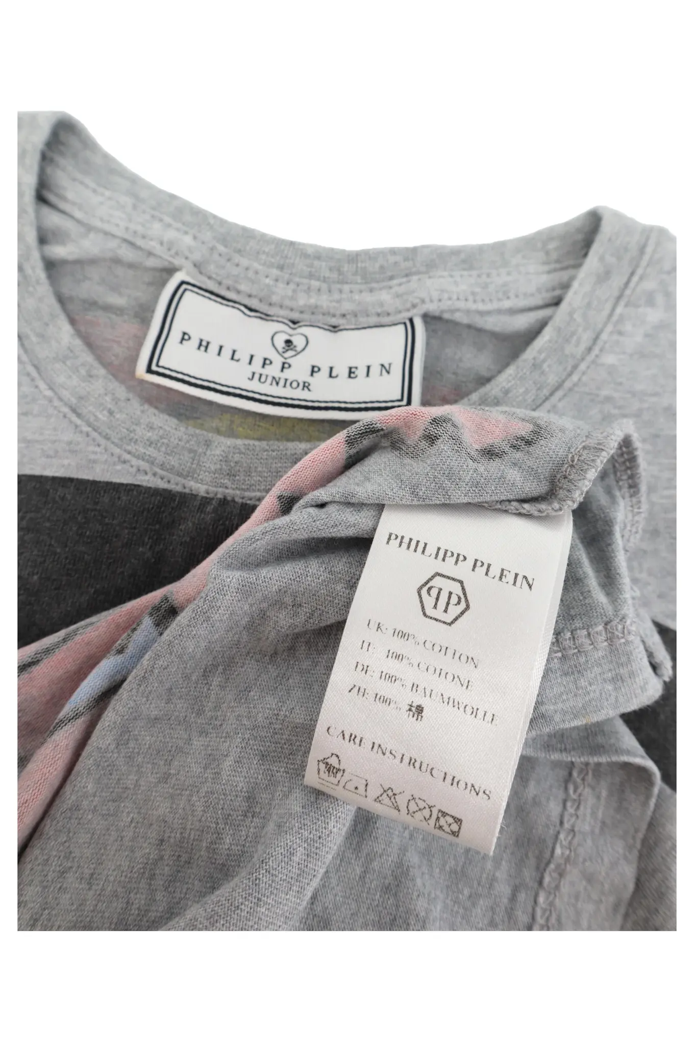 PHILIPP PLEIN Kinder T-Shirt Gr. 116 Grau Superman Logo-Print Strass Casual