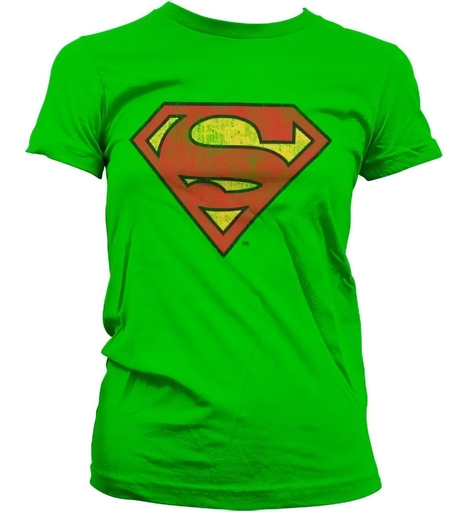 Superman Washed Shield Girly T-Shirt Damen Grün - Damen