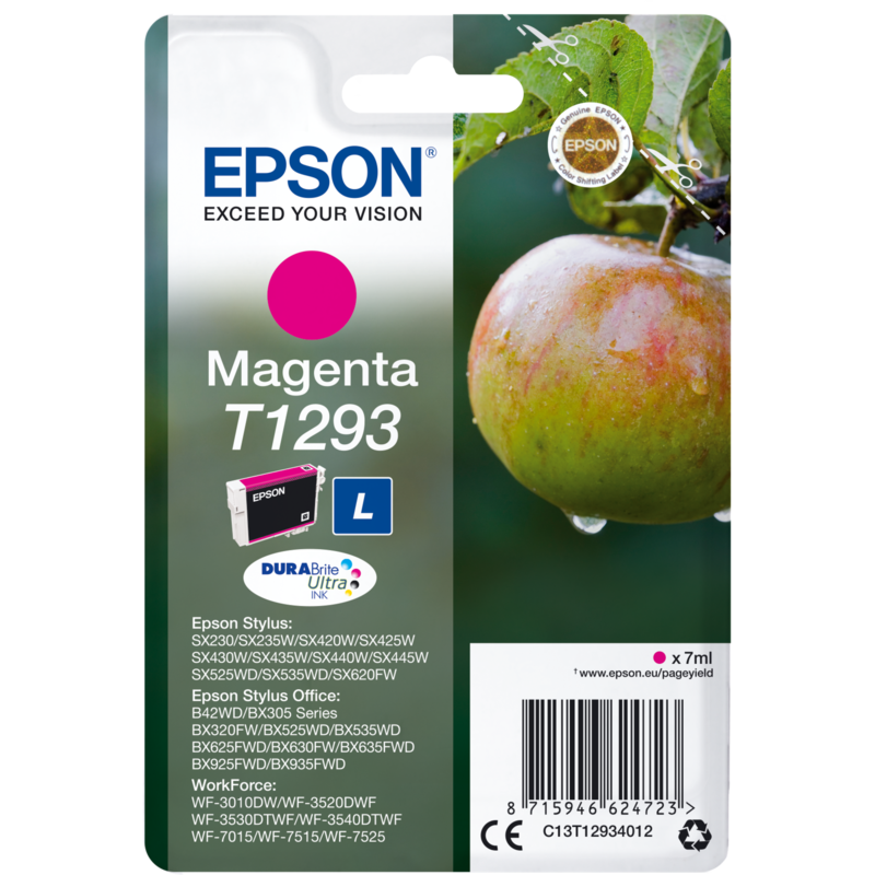 Epson Apple Singlepack Magenta T1293 DURABrite Ultra Ink, Magenta, Tinte auf Pigmentbasis, 7 ml, 1 Stück(e), 378 Seiten