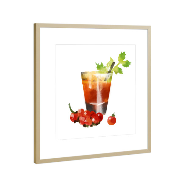Poster mit Rahmen Gold "Bloody Mary 3" artboxONE - Abstrakt - Cocktail,Getränk,Getränk,Bar,Wodka,Zitronensaft,Tabasco,Tomatensaft