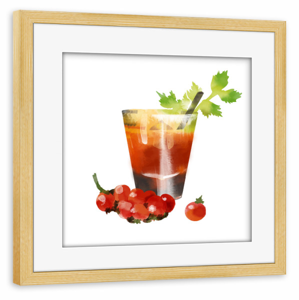 Poster mit Rahmen kiefer "Bloody Mary 3" artboxONE - Abstrakt - Cocktail,Getränk,Getränk,Bar,Wodka,Zitronensaft,Tabasco,Tomatensaft