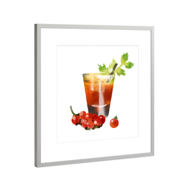 Poster mit Rahmen Silber "Bloody Mary 3" artboxONE - Abstrakt - Cocktail,Getränk,Getränk,Bar,Wodka,Zitronensaft,Tabasco,Tomatensaft