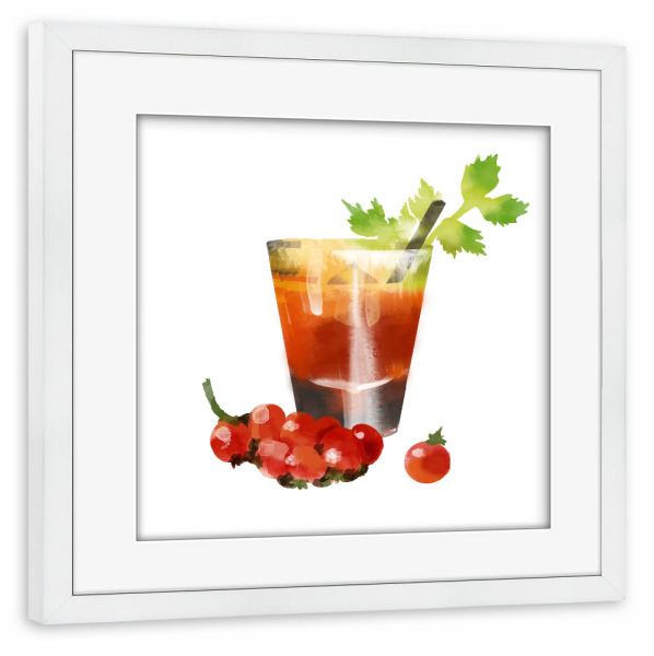 Poster mit Rahmen weiß "Bloody Mary 3" artboxONE - Abstrakt - Cocktail,Getränk,Getränk,Bar,Wodka,Zitronensaft,Tabasco,Tomatensaft