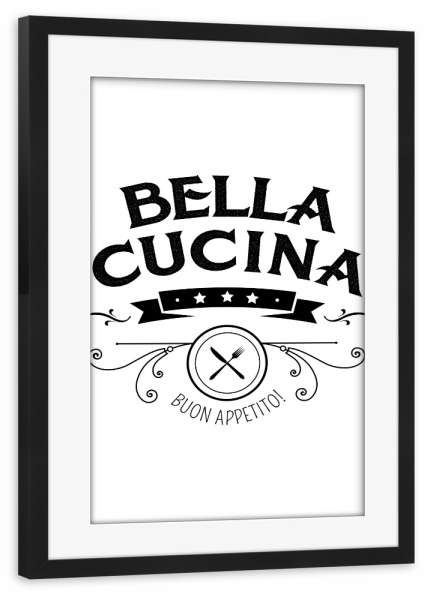 Poster mit Rahmen schwarz "Bella Cucina" artboxONE - Typografie,Essen & Trinken,Schwarzweiß - Bella cucina,Küche,Kitchen,Dinner table,Dinner