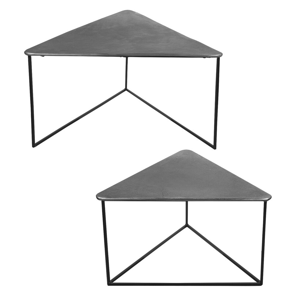 Set aus zwei Couchtischen im Dreieck aus Silber, Tischplattenlängen von 80 e - Autre Métal Table Passion 80x80 cm