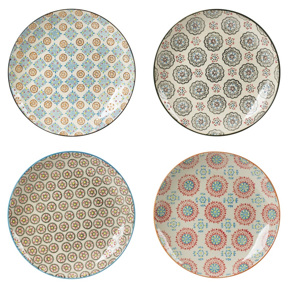 TABLE PASSION Set mit 4 flachen Tellern mit gemischtem Bohème-Dekor 26 cm Mehrfarbig Rund Steingut