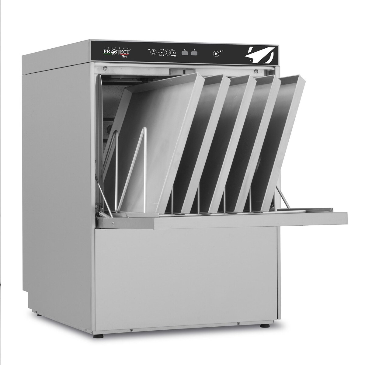 Silver Untertisch-Tablettspülmaschine für Töpfe, Eisbecher, EN 60x40 und GN1/1-Tabletts. Nutzbare Höhe der Tür 40,5 cm. Doppelwandig. Modell S90