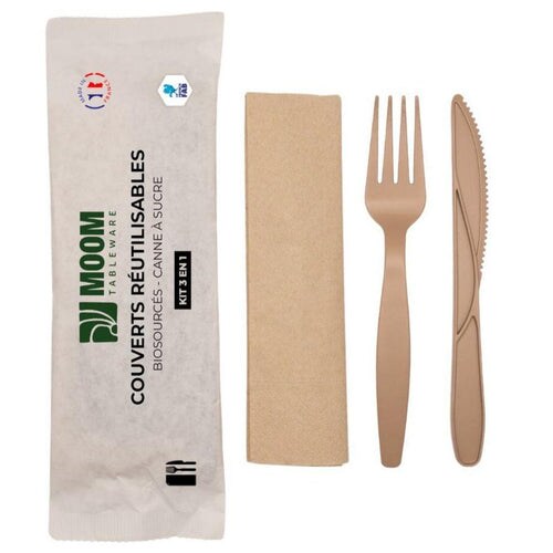 MOOM TABLEWARE Besteckset 3 in 1 Gabel Messer Serviette Made in France
