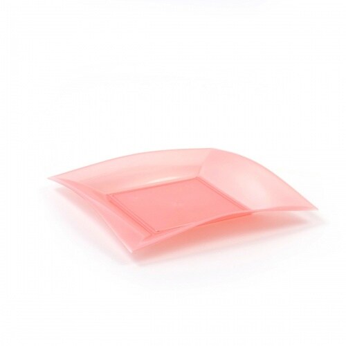 Sovie Tableware Teller aus Plastik (PP), flach, Perlmutt-Rosa, 230x230mm, 8 Stück - Einweg Menueteller