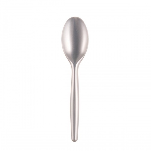 Sovie Tableware Löffel metallisiert aus Plastik, 17 cm, Silber, 50 Stück - Einweg Besteck