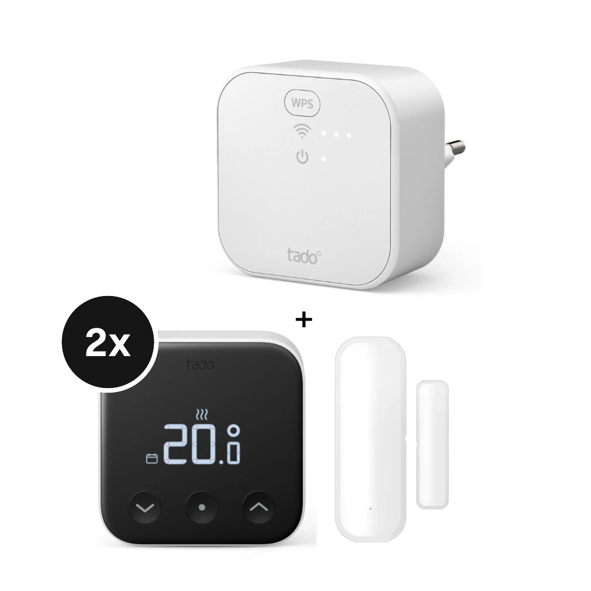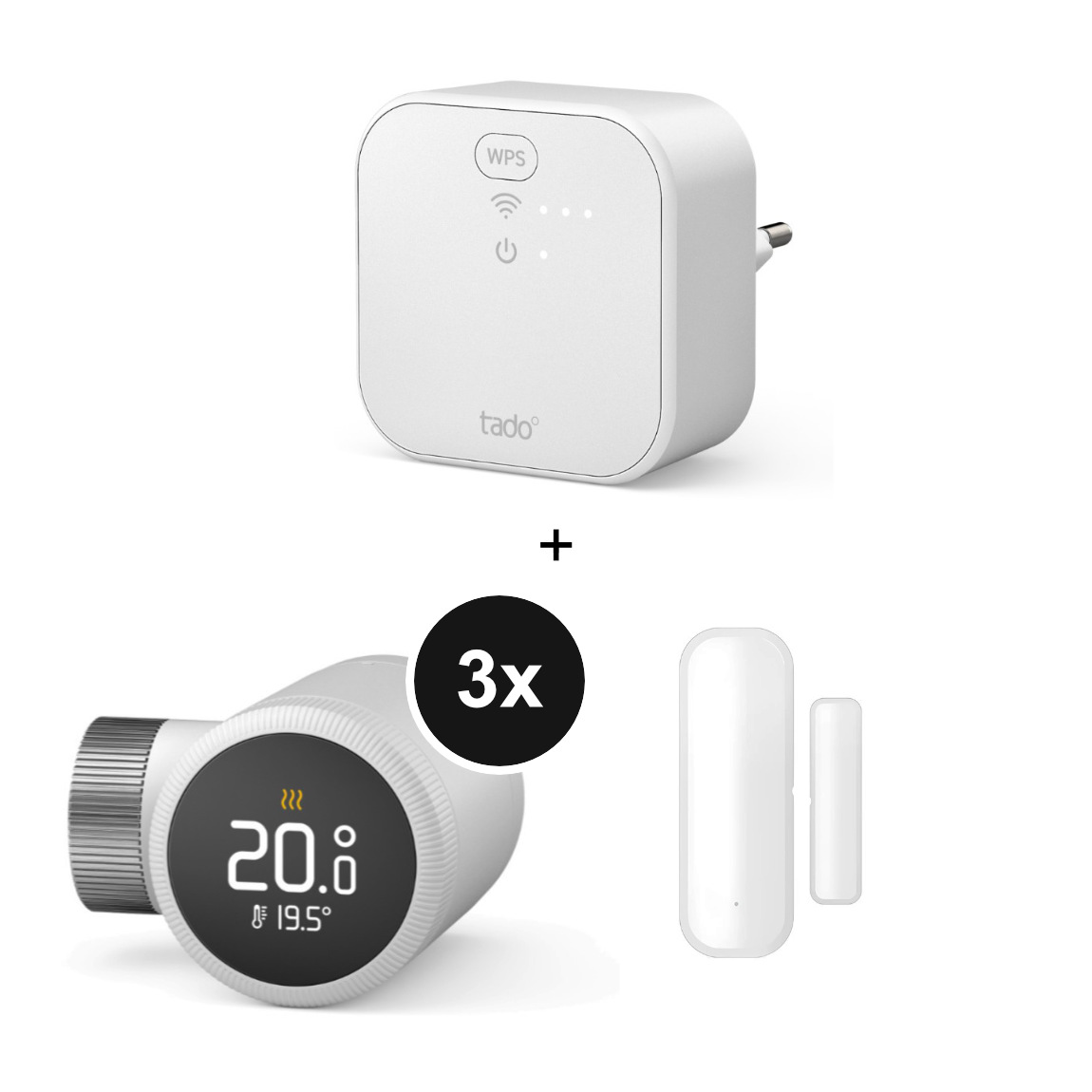 tado° X Starter Kit Smartes Heizkörper-Thermostat - 3er-Set & Bridge + tink Basics Matter Smart Door & Window Sensor