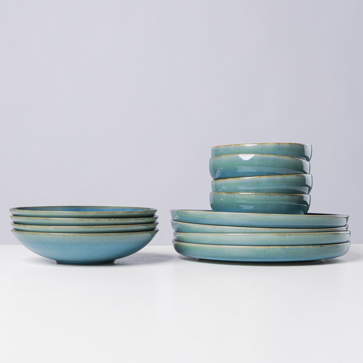 Teller Set für 4 Personen, 12-teiliges Tafelservice aus hochwertiger Keramik, Steinzeug, Blau