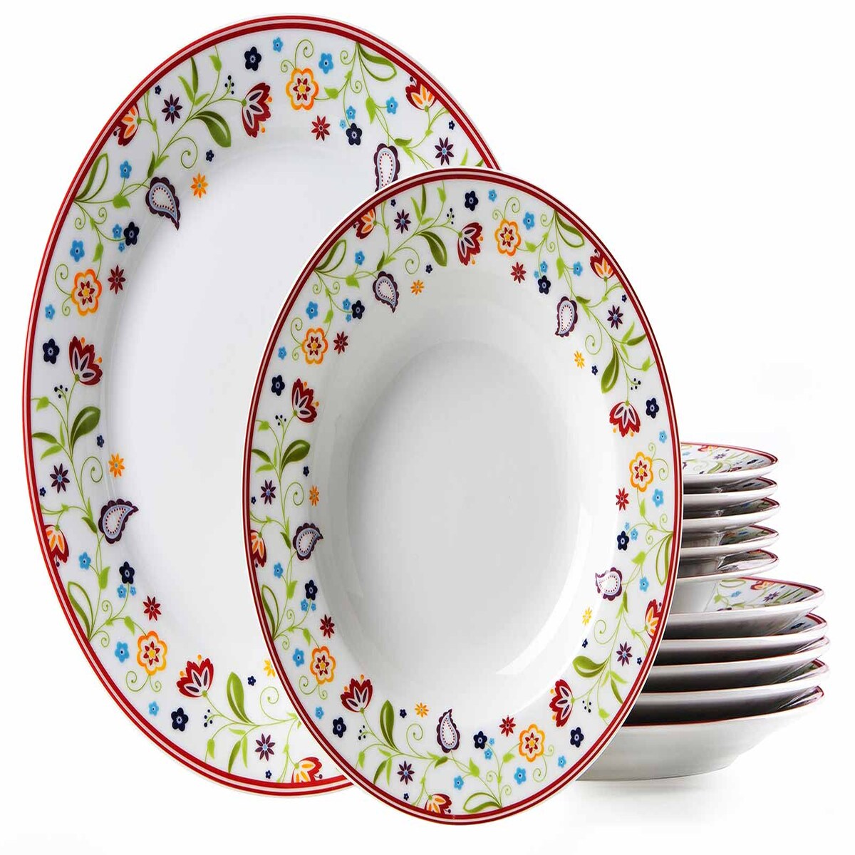Verano Serviesset – 12-teilig – 12 Personen – Bunte Mischung – Essteller – Tafelservice – Tiefe Teller – Frühstücksteller – Servi...