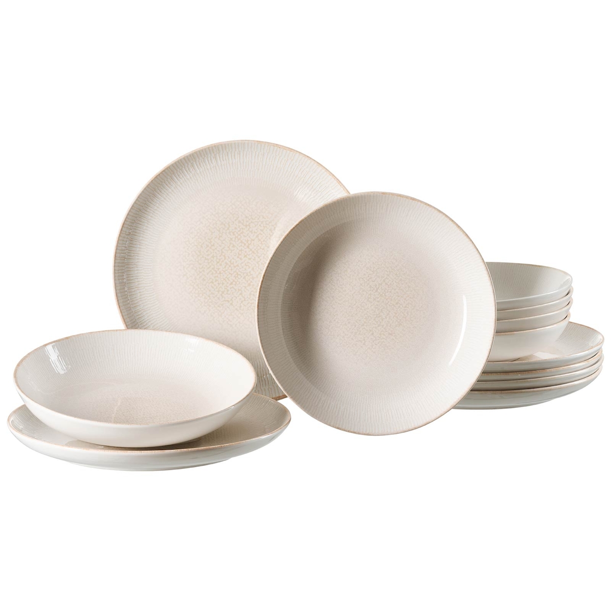 OTIX Serviesset Tafelservice 6 Personen 18-teilig Frühstücksteller Speiseteller Suppenschalen BEECH