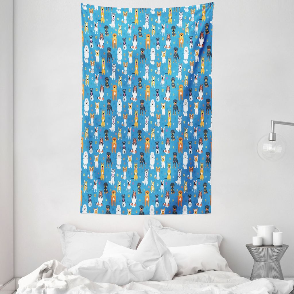ABAKUHAUS Hunde Wandteppich und Tagesdecke, Hunde- Welpen Joyful Haustiere Paws aus Weiches Mikrofaser Stoff Waschbar ohne Verblassen Digitaldruck,...