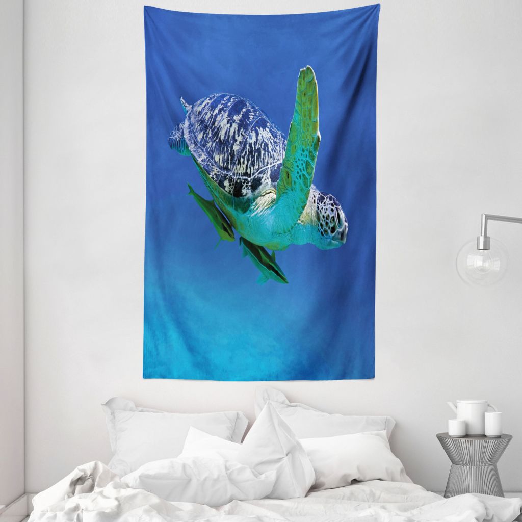 ABAKUHAUS Ozean Wandteppich und Tagesdecke, Meeresschildkröten Unterwasser aus Weiches Mikrofaser Stoff Waschbar ohne Verblassen Digitaldruck, 140...