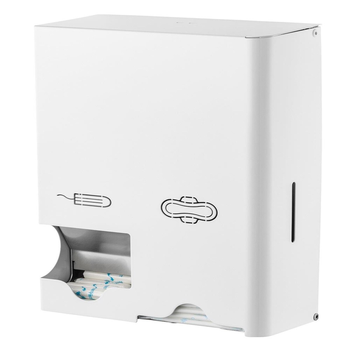 All Care MediQo-line Tampon- und Bindenspender klein - Edelstahl - weiß - incl. Füllung