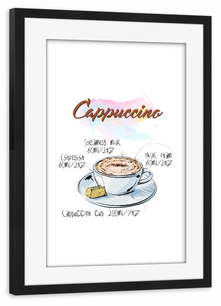 Poster mit Rahmen schwarz "Cappuccino coffee" artboxONE - Essen & Trinken - Rezept,Drink,Trinken,Coffee,Bar,Zucker,Tasse,Cafe,Kaffee