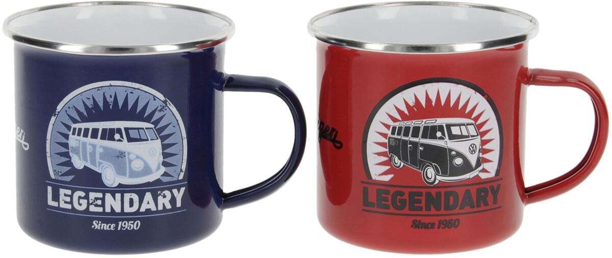 VW Collection Legendary Tassen, 2er Set, Emaille, rot/blau