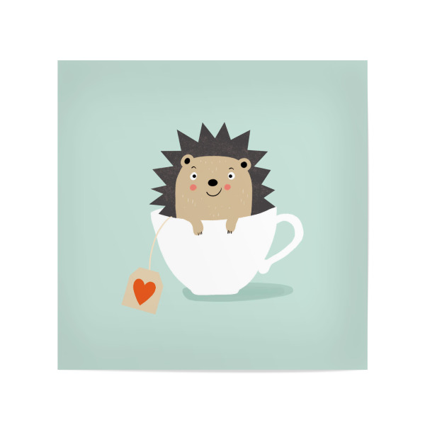 Poster 20x20 cm "Tassen Igel" artboxONE - Für Kinder,Tiere - Igel,Süß,Niedliche tiere,Tasse,Teetasse,Herz,Herzlich,Kinder,Kinderzimmer