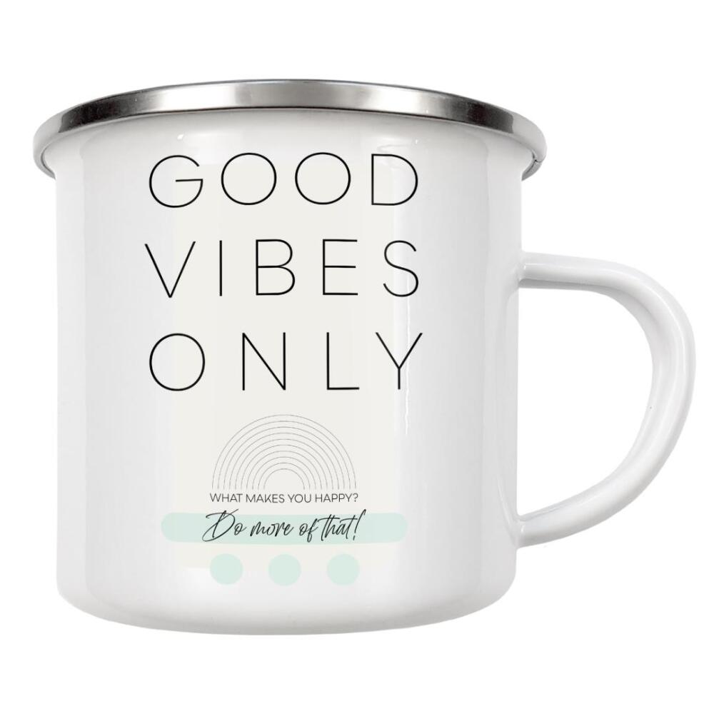 Emaille Tasse "What makes you happy - türkis" artboxONE - Typografie