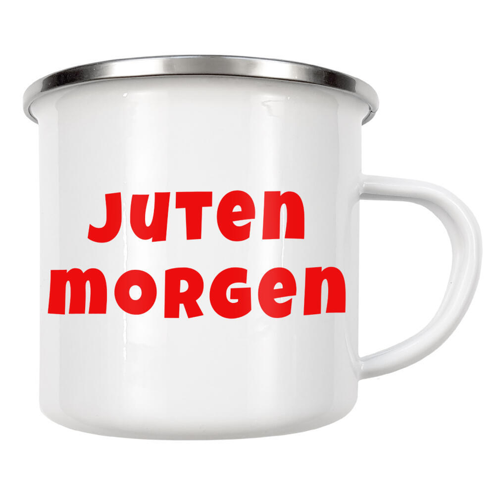 Emaille Tasse "Juten Morgen" artboxONE - Typografie - Juten,Morgen,Kölsch,Spruch,Guten,Typo,Typografie,Minimalismus,Bunt