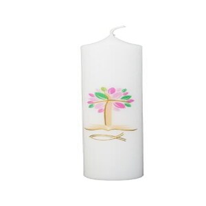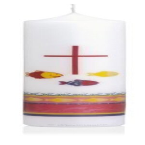 Wiedemann Kerzen Taufkerze Mädchen "Kreuz mit Fischen" Bunt 265 x Ø 50 mm