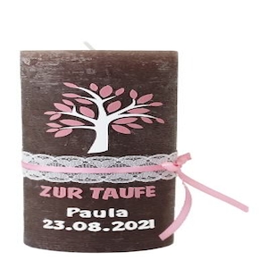 Set Taufkerze Mädchen Lebensbaum Rosa 265 x Ø 50 mm mit Namensverzierung und Geschenketui