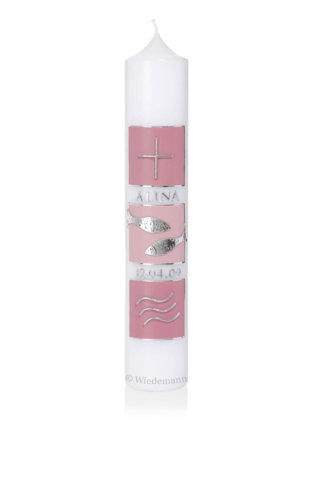 Wiedemann Kerzen Taufkerze Mädchen "Kreuz, Fische mit Wasser" Rosa 265 x Ø 50 mm