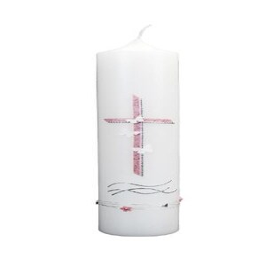Taufkerze Mädchen rosa Kreuz 25 x 6 cm mit Namensverzierung und Geschenkkarton