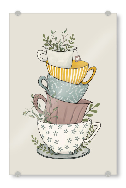 Acrylglasbild "Tassenstapel.jpg" artboxONE - Essen & Trinken - Teacups,Tassen,Geschirr,Illustration,Küche,Tee,Tea,Mugs,Bunt,Colorful