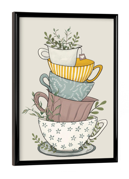 Poster mit schwarzem Rahmen "Tassenstapel.jpg" artboxONE - Essen & Trinken - Teacups,Tassen,Geschirr,Illustration,Küche,Tee,Tea,Mugs,Bunt,Colorful