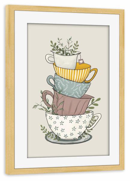 Poster mit Rahmen kiefer "Tassenstapel.jpg" artboxONE - Essen & Trinken - Teacups,Tassen,Geschirr,Illustration,Küche,Tee,Tea,Mugs,Bunt,Colorful