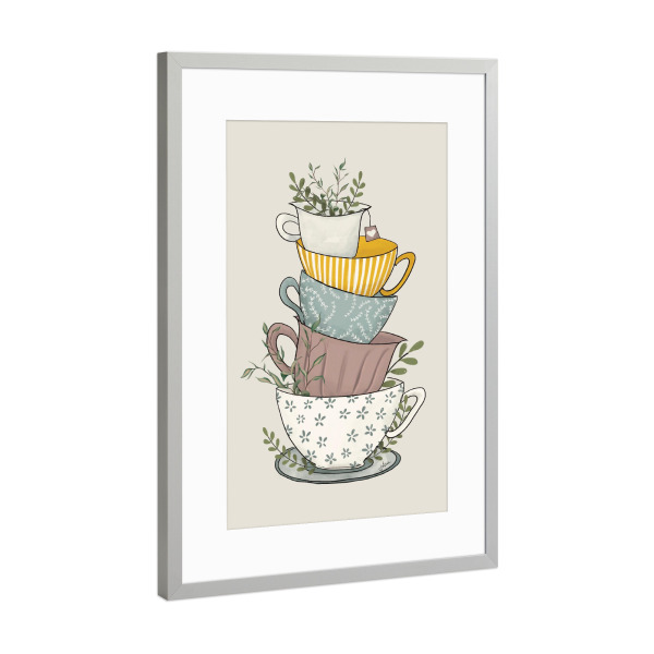 Poster mit Rahmen Silber "Tassenstapel.jpg" artboxONE - Essen & Trinken - Teacups,Tassen,Geschirr,Illustration,Küche,Tee,Tea,Mugs,Bunt,Colorful