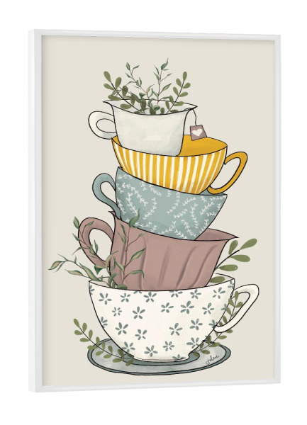 Poster mit Rahmen weiß "Tassenstapel.jpg" artboxONE - Essen & Trinken - Teacups,Tassen,Geschirr,Illustration,Küche,Tee,Tea,Mugs,Bunt,Colorful