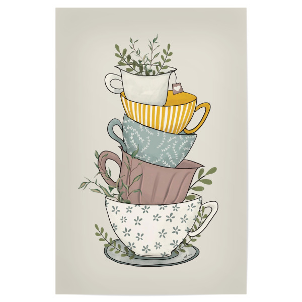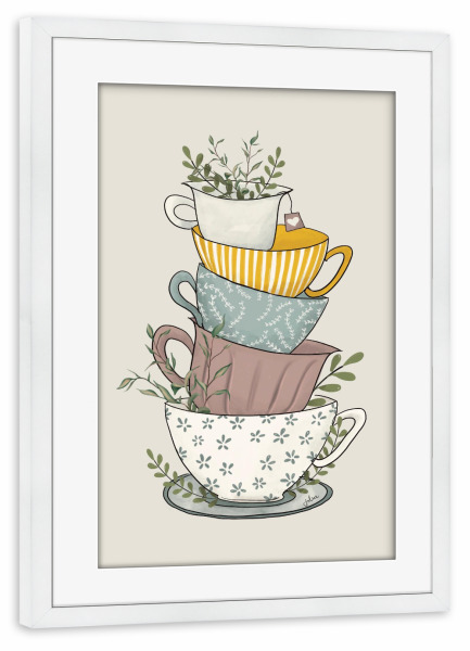 Poster mit weißem Rahmen "Tassenstapel.jpg" artboxONE - Essen & Trinken - Teacups,Tassen,Geschirr,Illustration,Küche,Tee,Tea,Mugs,Bunt,Colorful