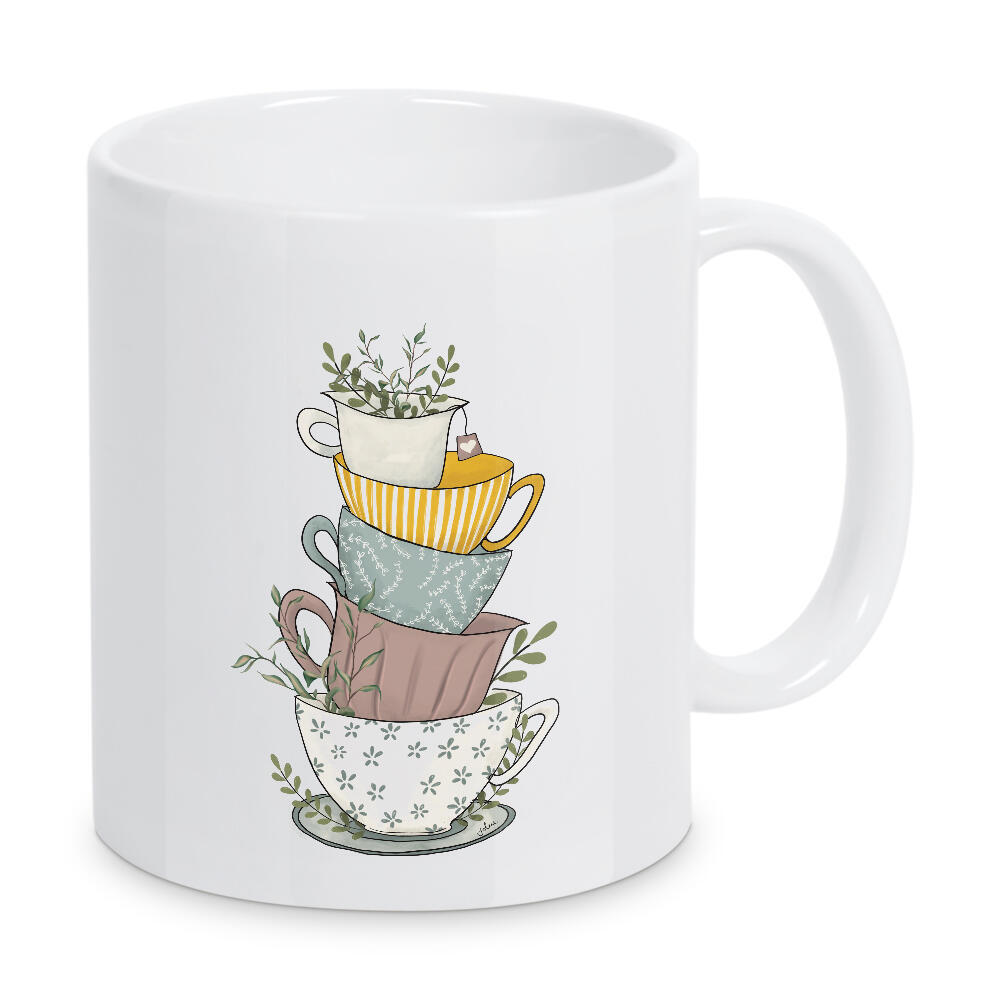 Herztasse "Tassenstapel.jpg" artboxONE - Essen & Trinken - Teacups,Tassen,Geschirr,Illustration,Küche,Tee,Tea,Mugs,Bunt,Colorful