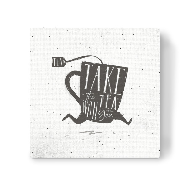 Leinwandbild "Take cup of tea with you" artboxONE - Essen & Trinken - Drink,Illustration,Graphic,Morning,Retro,Cafe,Cup,Mug,Vintage,Old,Dirty,Tea