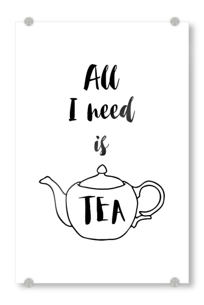 Acrylglasbild "All I need is Tea" artboxONE - Typografie,Essen & Trinken,Schwarzweiß - Tea,Tea lover,Tea addict,Tea quotes,Teapot